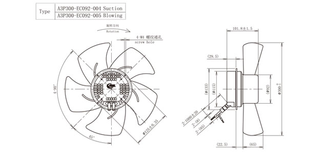 | A3P300-EC0924-*** | [VAC] | [Hz] | [rpm] | [W] | [A] | [dB] | [°C] | |